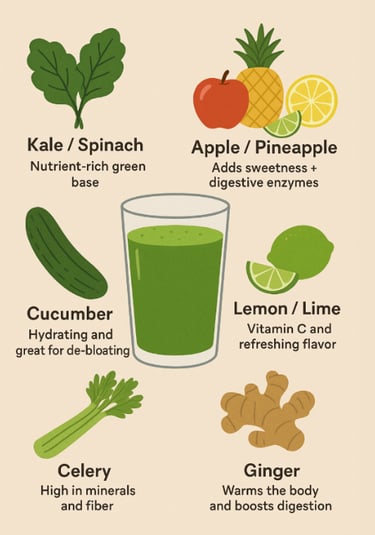 Detox juice is a blend of fruits, vegetables, and herbs designed to support digestion, hydration, and gentle detoxification.