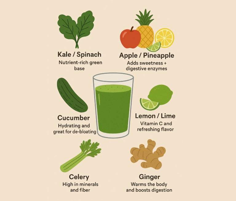 Apple / Pineapple → Adds sweetness + digestive enzymes